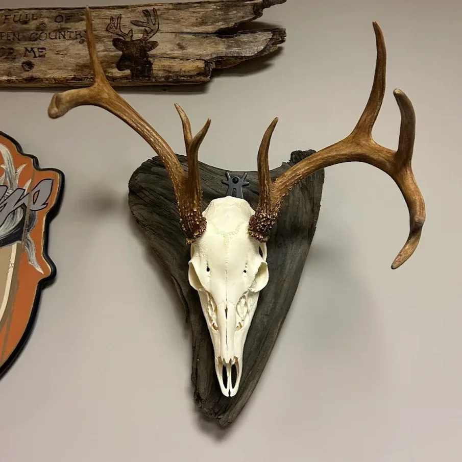 “Laughing Fox created this awesome Euro mount for me on a buck I killed in the 2023 early muzzleloader season. Not only did it turn out perfect and exceed my expectations, Kate used her creativity and mounted it onto this awesome piece of Susky River driftwood for me. Throughout the process I was kept updated as Kate wouldn’t release it to me until she was 100% satisfied that that staining was free from the bone and the color was perfect. Laughing Fox does professional , first class work , and they are also veteran owned , so that kicks a$$!!!”